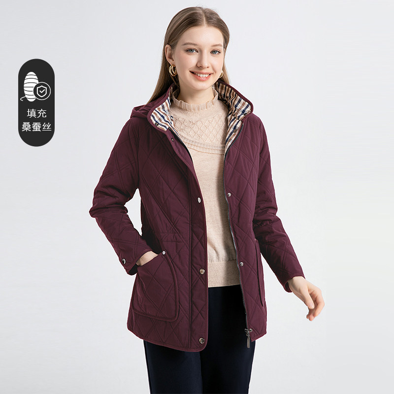 为您提供商品显瘦正品 外套宽松大码 赏心岁月中年妈妈休闲连帽蚕丝棉服秋冬新款的详细介绍,