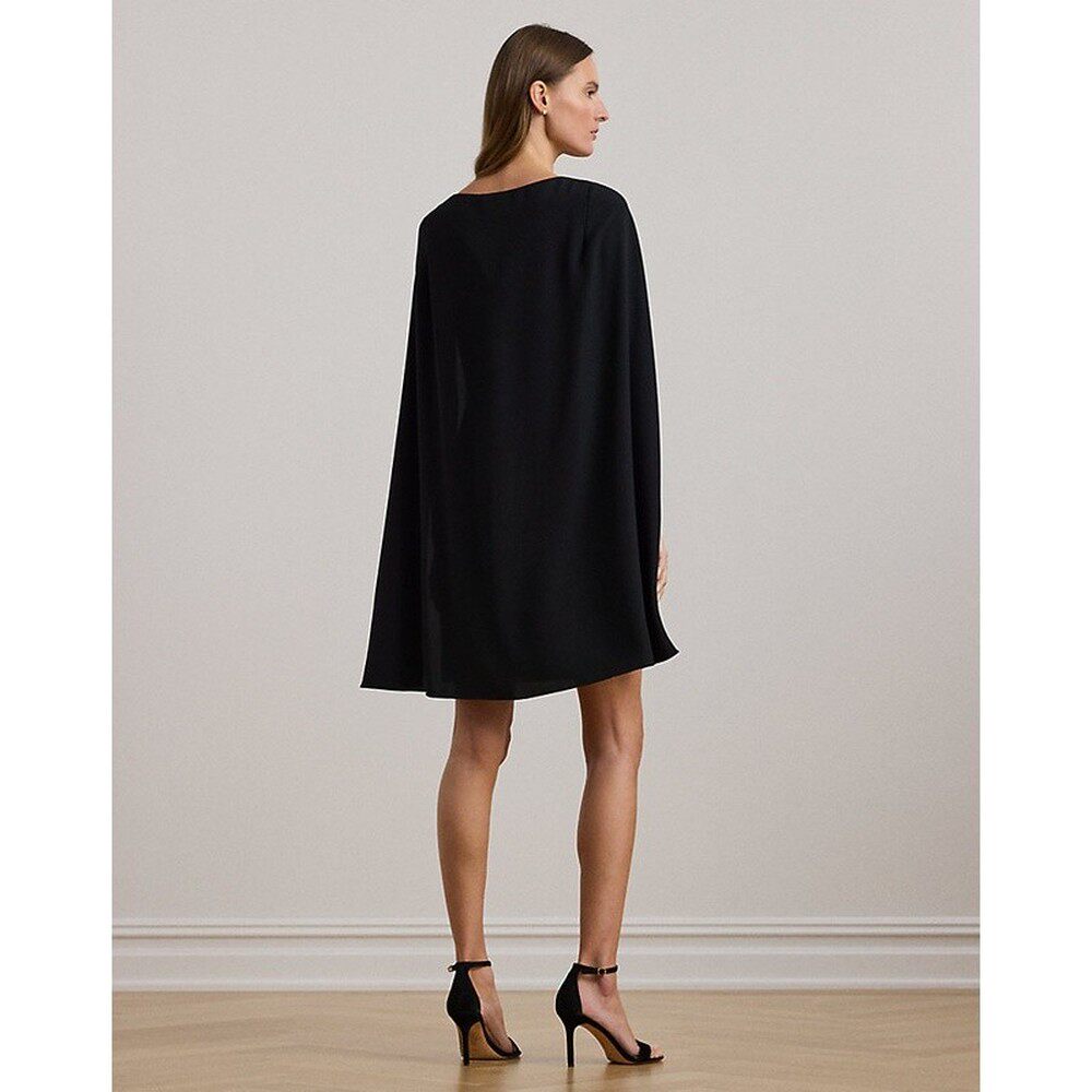 自营欧洲直邮RALPH Lauren乔其纱斗篷鸡尾酒裙 LAUREN拉夫劳伦
