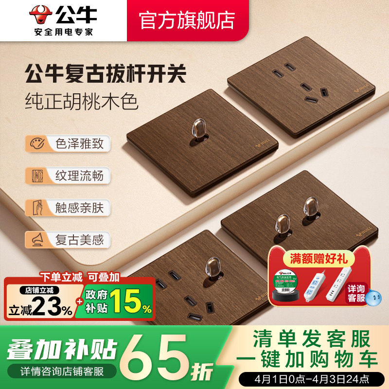 为您提供商品公牛G70超薄拨杆开关胡桃木色五孔插座面板86型复古中古仿木纹的详细介绍,