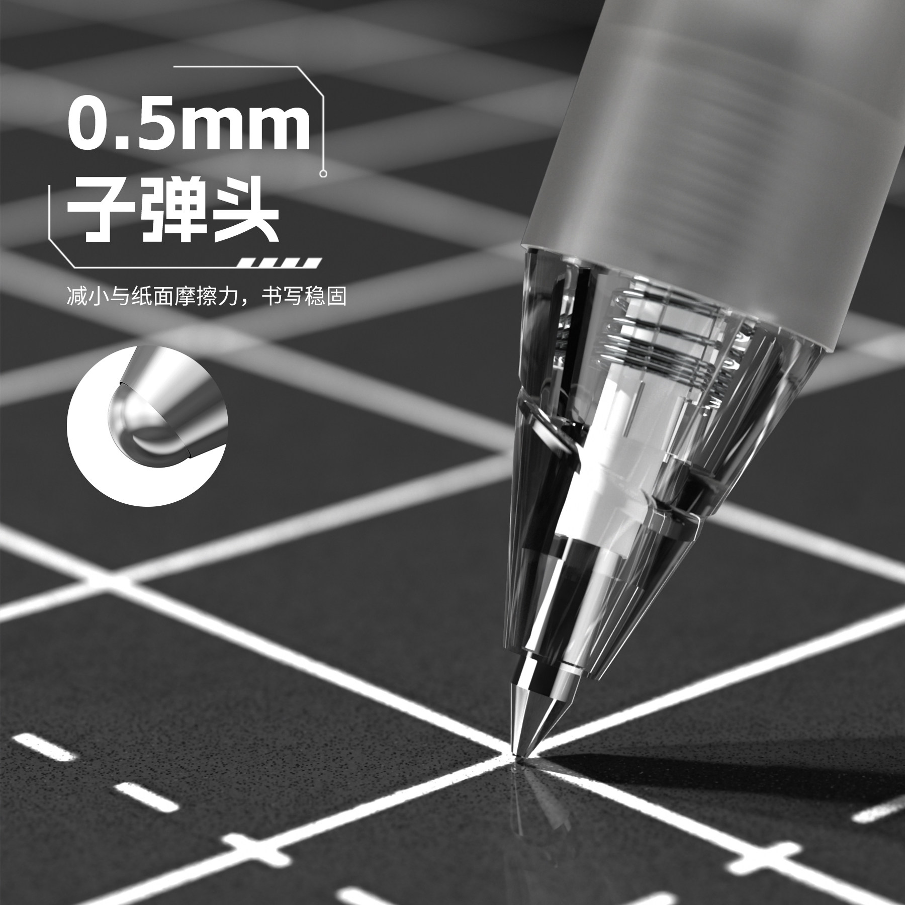 得力刷题笔速干st头透明考试笔按动笔中性笔学生用红笔学生专用备考水性笔0.5mm黑色透明考试笔高颜值