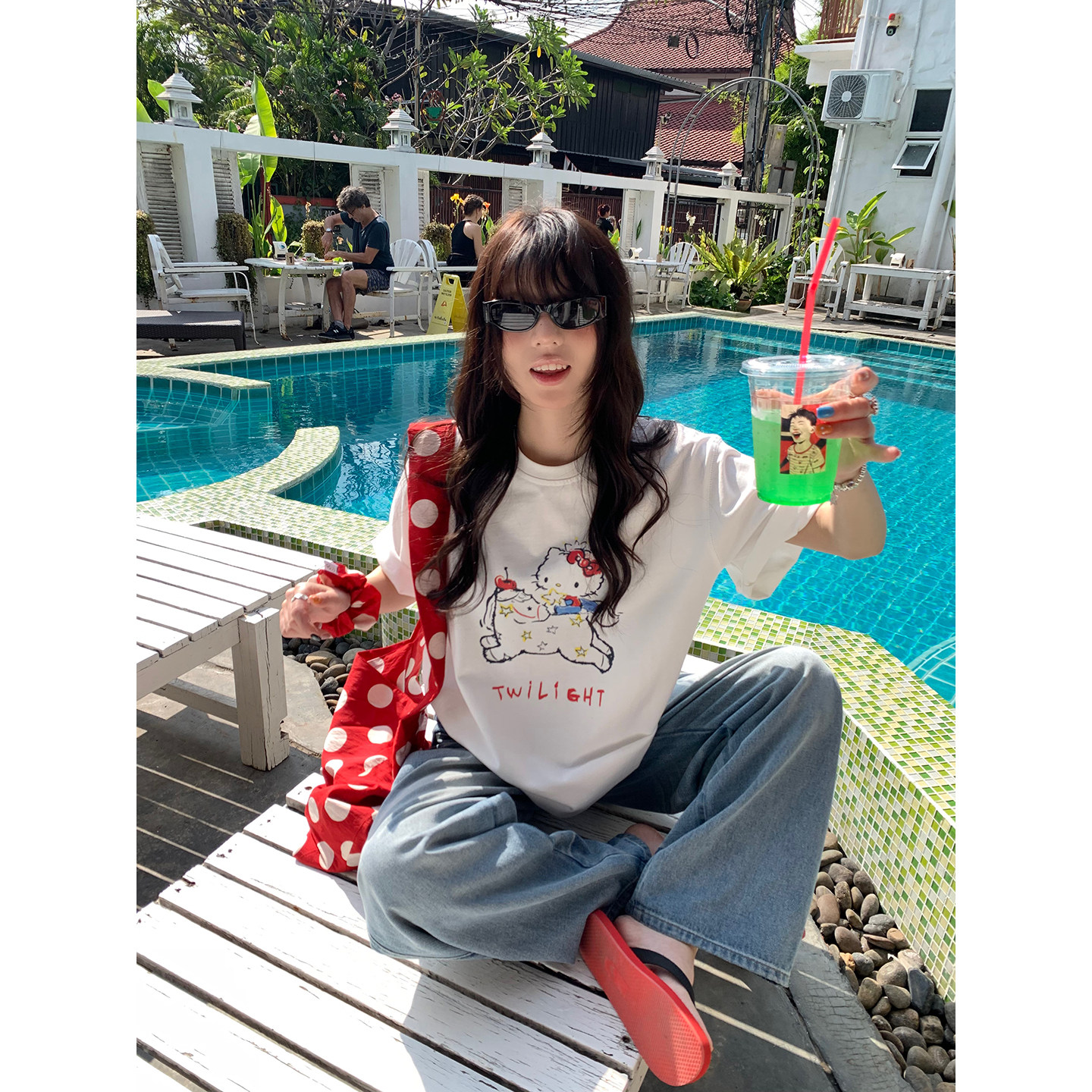 LA短袖 宽松百搭印花上衣白色11 T恤男女情侣落肩袖
