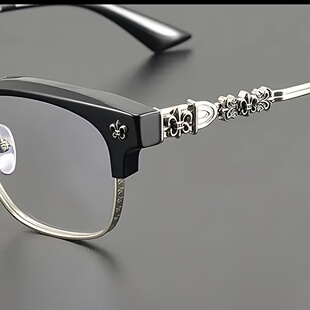 克罗纯钛黑框眼镜半框眼镜近视眼镜高级变色定制成品光学眼镜