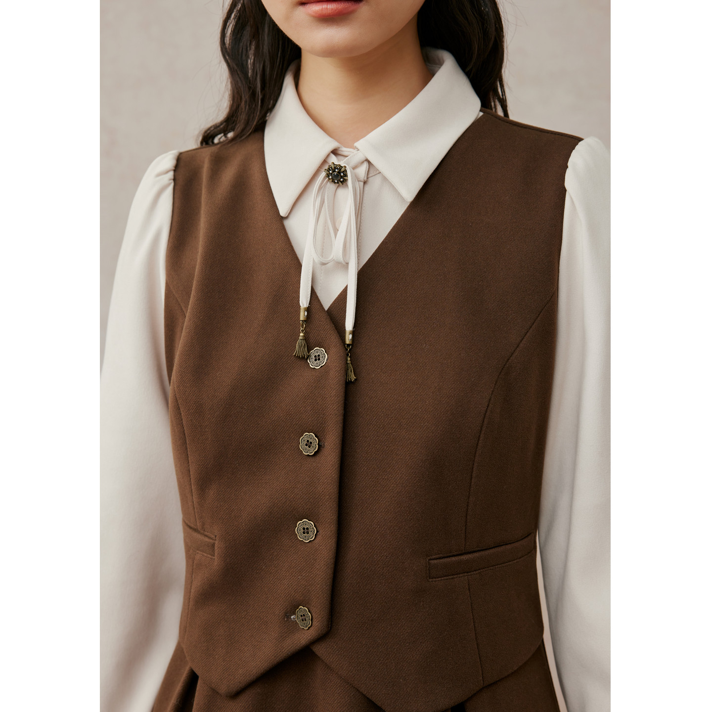 为您提供商品紫涵假三件长袖 新款 复古衬衫 马甲拼接收腰a字裙 连衣裙女2025冬季的详细介绍,