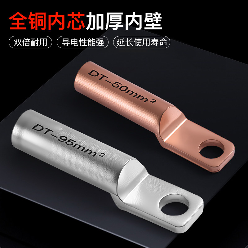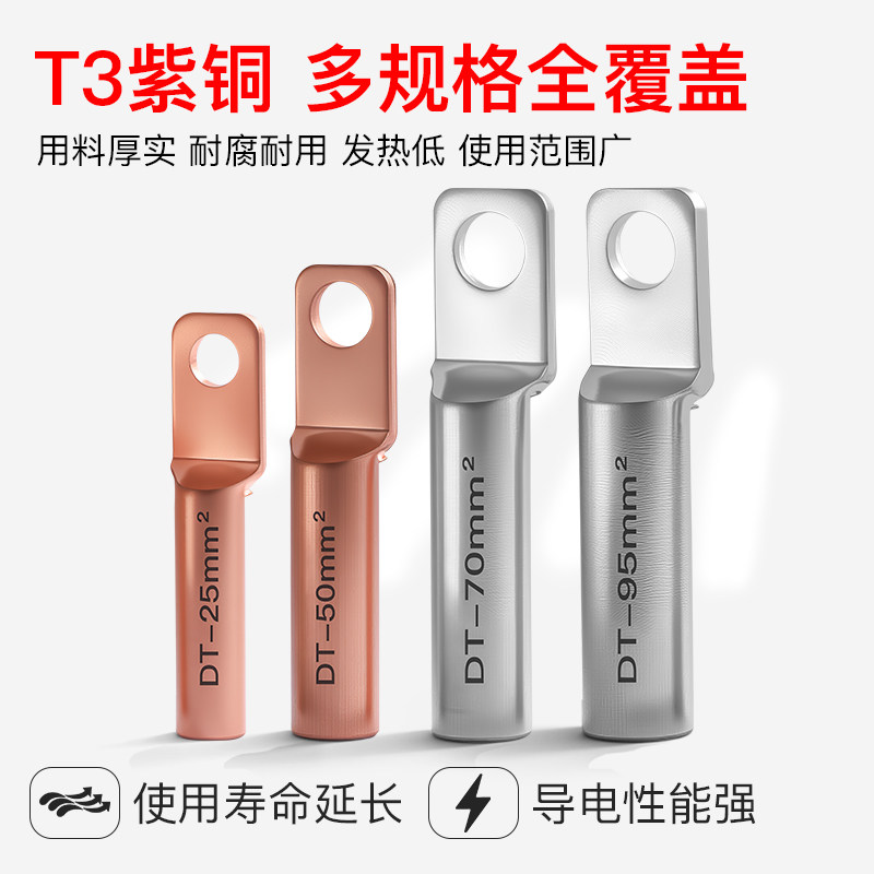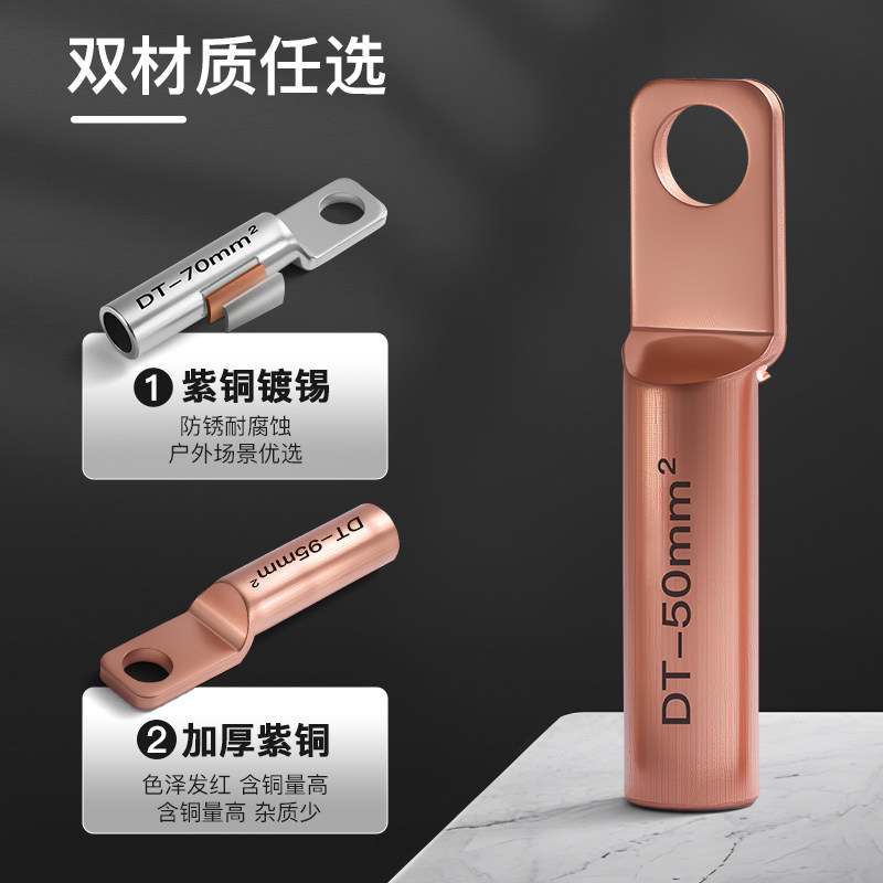 DT铜鼻子紫铜堵油接线端子国标镀锡线耳16 95平方
