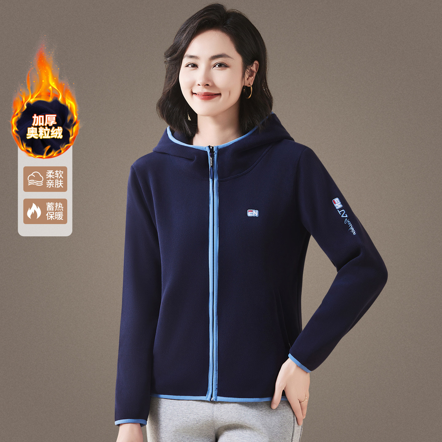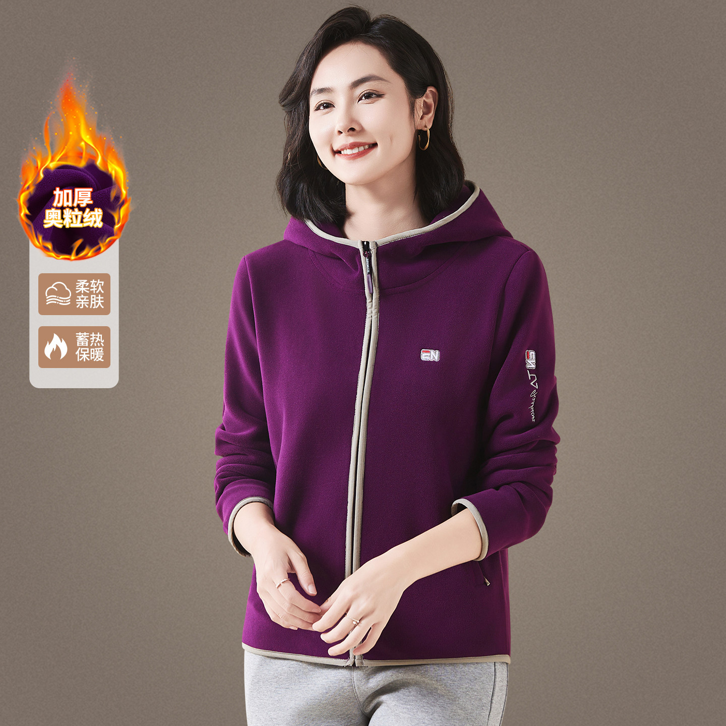 中老年女装 加绒加厚连帽上衣 2025新款 中年妈妈抓绒摇粒绒外套冬季
