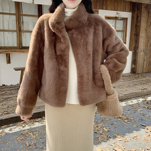 本期重磅 Dear 毛毛外套 少女貂貂皮毛一体环保皮草立领短款