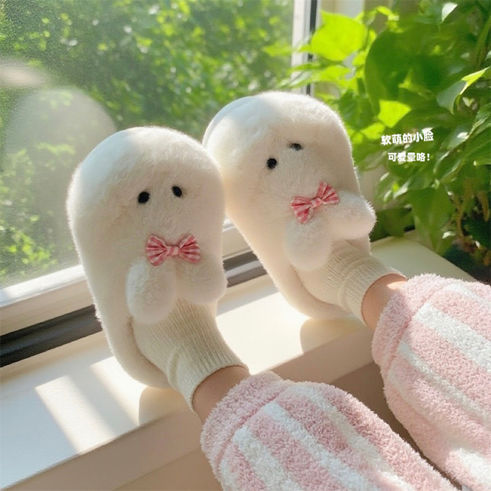 细细条 少女心居家毛毛鞋 防滑保暖ins软萌小肥兔棉拖鞋 女 学生冬季由