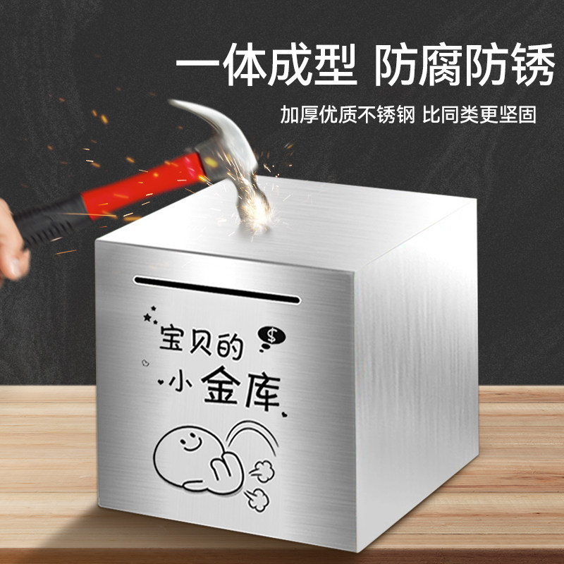 2026新款 儿童储存箱储蓄罐大容量不锈钢 存钱罐只进不出女孩男孩款