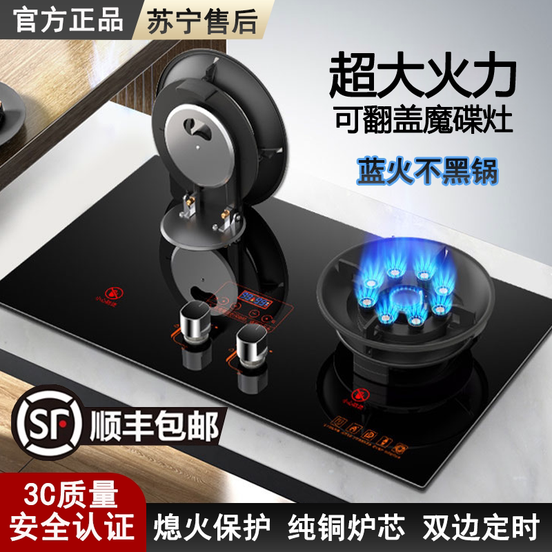 煤气灶家用双灶 熄火保护液化天燃气炉具 九腔猛火5.2KW不锈钢台式