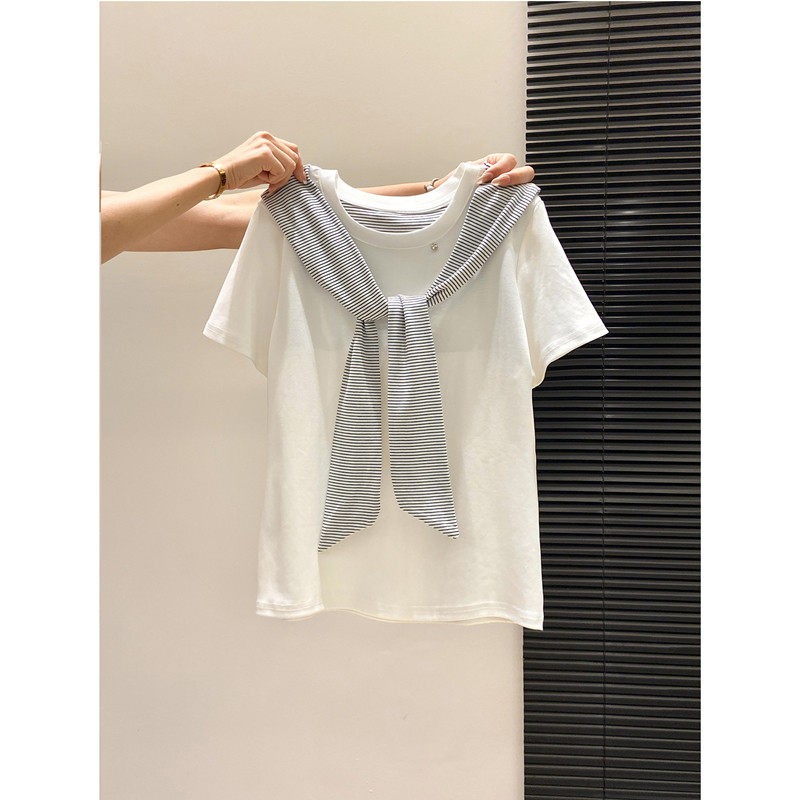 新款 WU敌好看 带披肩白色短袖 T恤女2026夏季 气质绝美独特上衣 修身