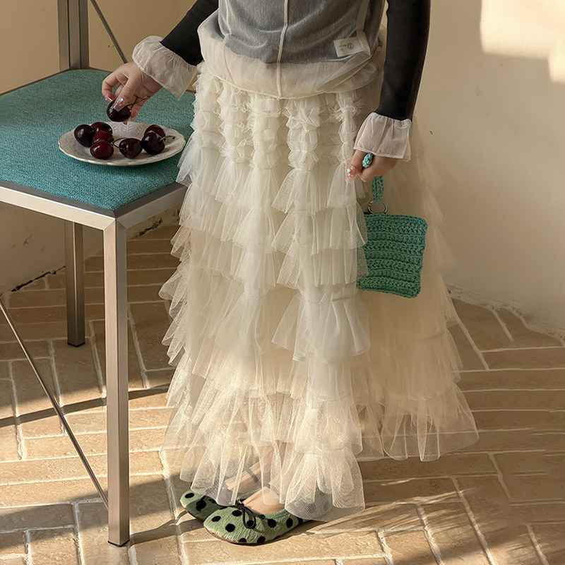 蛋糕纱裙26A069 Yumi妈女童小仙女公主半身裙儿童飘逸层次感中长款