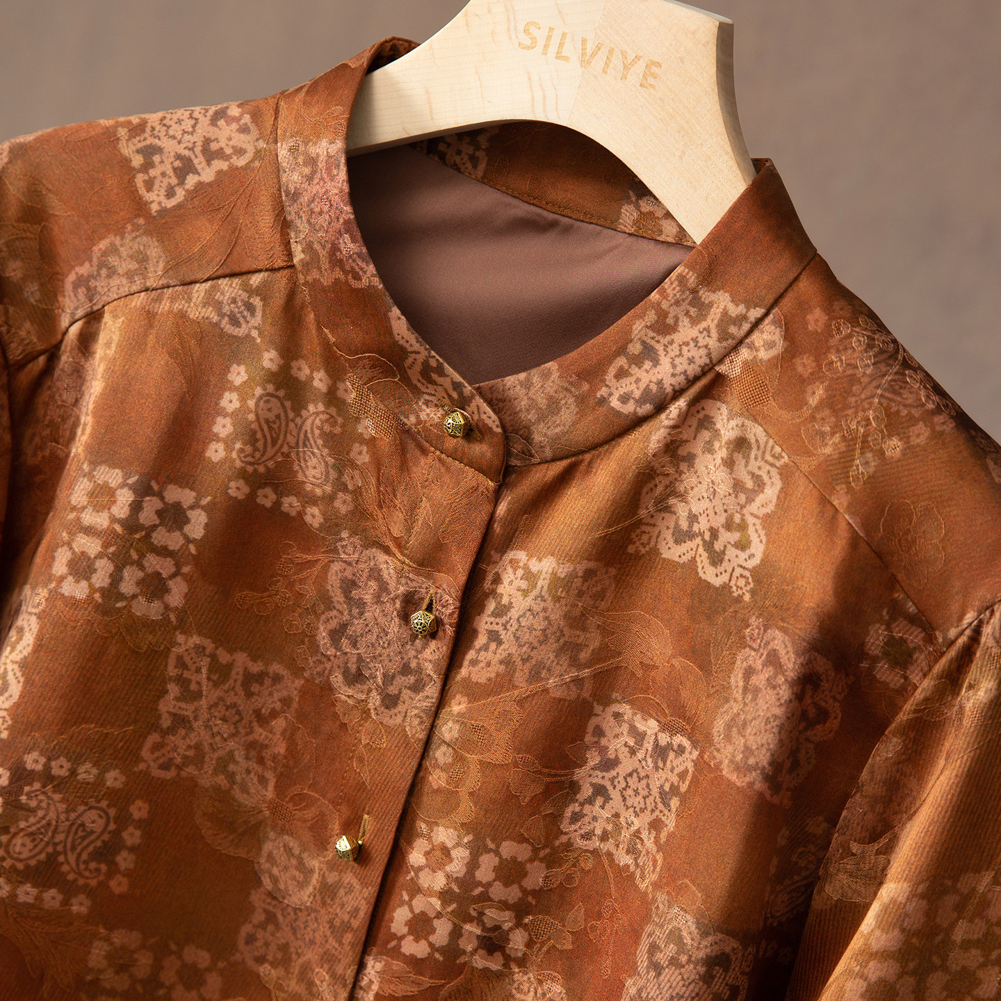 SILVIYE溯也 立领长袖 真丝外套女国风开衫 上衣春 100%桑蚕丝新中式