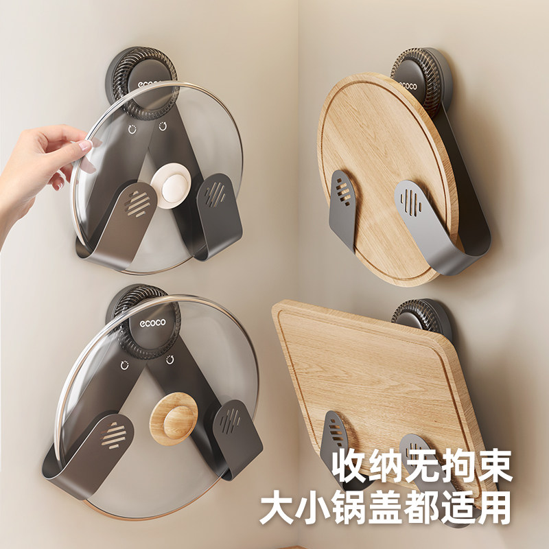 多功能厨房置物架收纳砧菜板放置器 ecoco吸盘锅盖架免打孔壁挂式