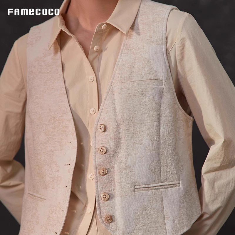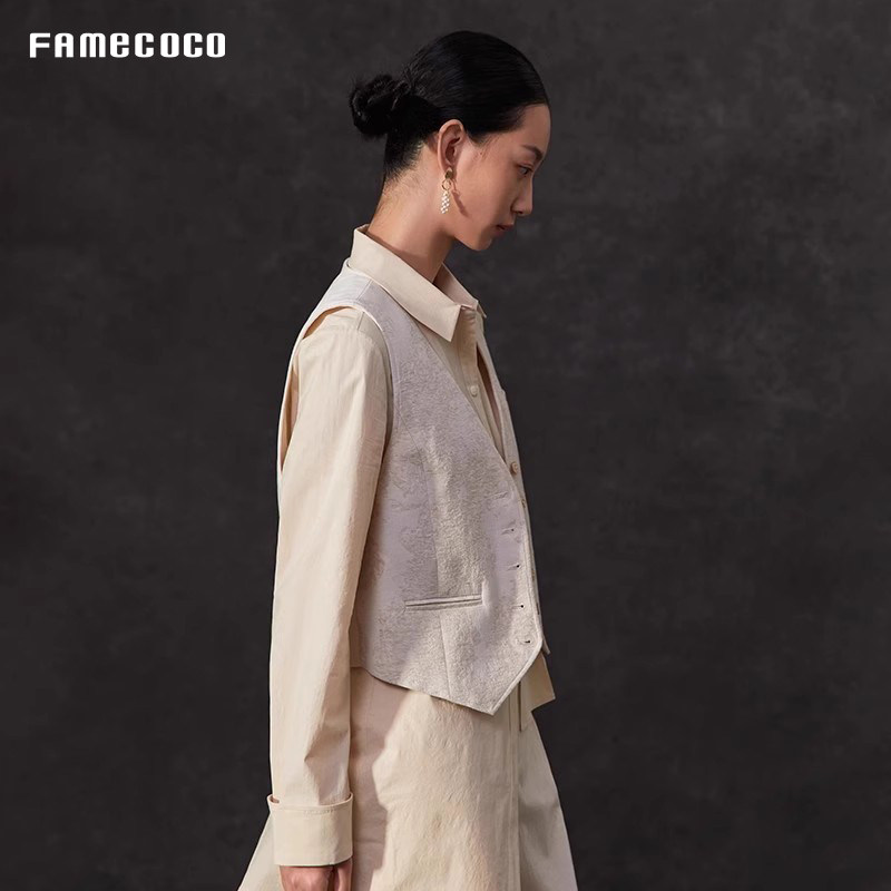 为您提供商品Famecoco设计师款 棉麻马甲肌理感暗纹提花马夹FAC1CA001 新中式的详细介绍,