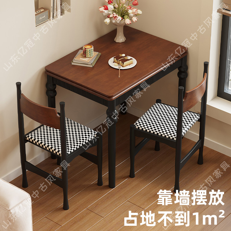 为您提供商品复古可伸缩靠墙省空间实木吃饭桌子 中古风小户型折叠餐桌家用法式的详细介绍,