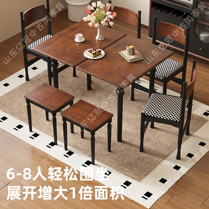 实木饭桌长方形 实木折叠餐桌家用小户型餐桌中古风餐桌椅2026新款