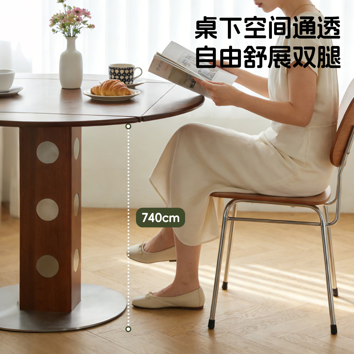 为您提供商品折叠圆餐桌中古风实木家用圆桌小户型包豪斯风方圆桌两用吃饭桌子的详细介绍,
