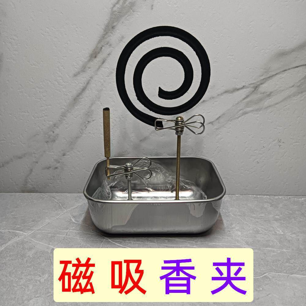 磁吸蚊香夹子不锈钢蚊香支架磁吸檀香盘安全接灰托盘底座铁JC 新款由