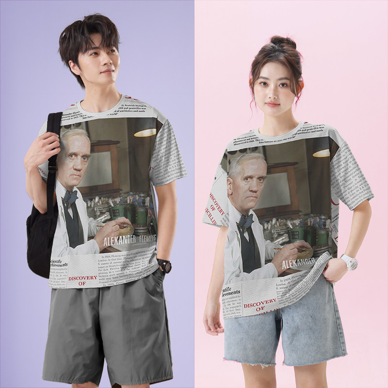 为您提供商品无界 生物学家弗莱明青霉素名人报纸速干T恤男女创意体恤衣服潮设的详细介绍,