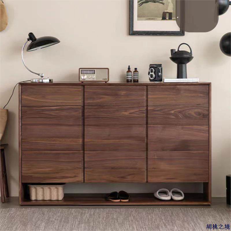 为您提供商品柜家用门口樱桃木玄关柜餐边柜多层收纳 北欧简约黑胡桃三门实木鞋的详细介绍,
