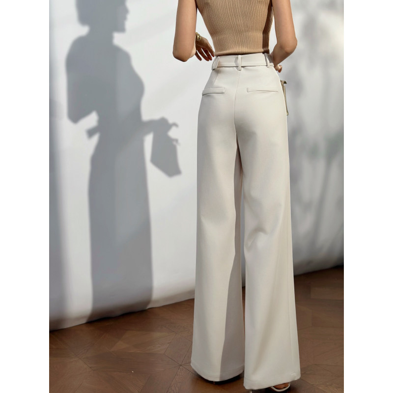 XULU原创新款 通勤白色优雅高腰修身 阔腿长裤 气质抗皱直筒西裤