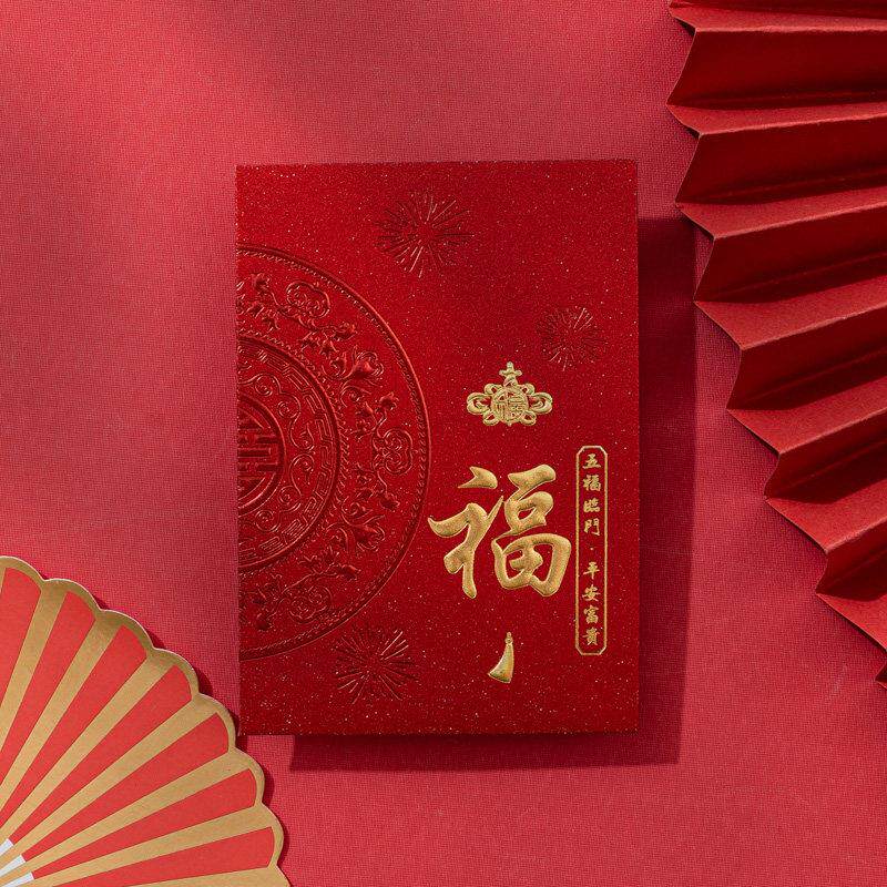 纸新年利是封传统祝福语利是封红包 2026春节红包袋福字烫金铜版