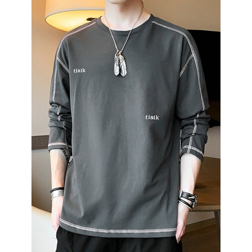 潮牌简约百搭上衣服春季 宽松休闲圆领卫衣 t恤男2026新款 纯棉长袖