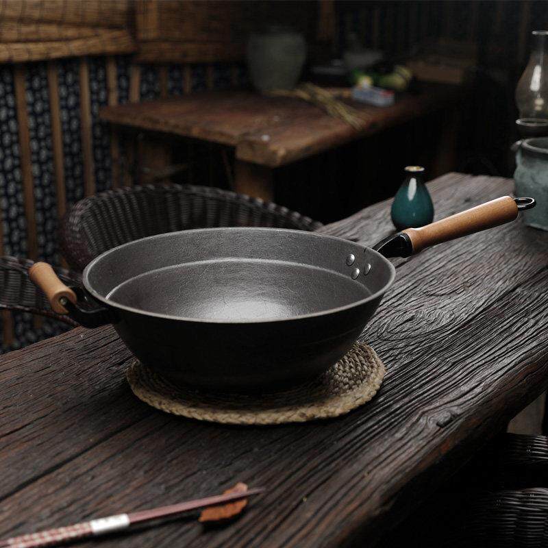 炒锅家用不粘锅无涂层燃气灶适用 章丘炒菜锅传统铁锅官方旗舰老式