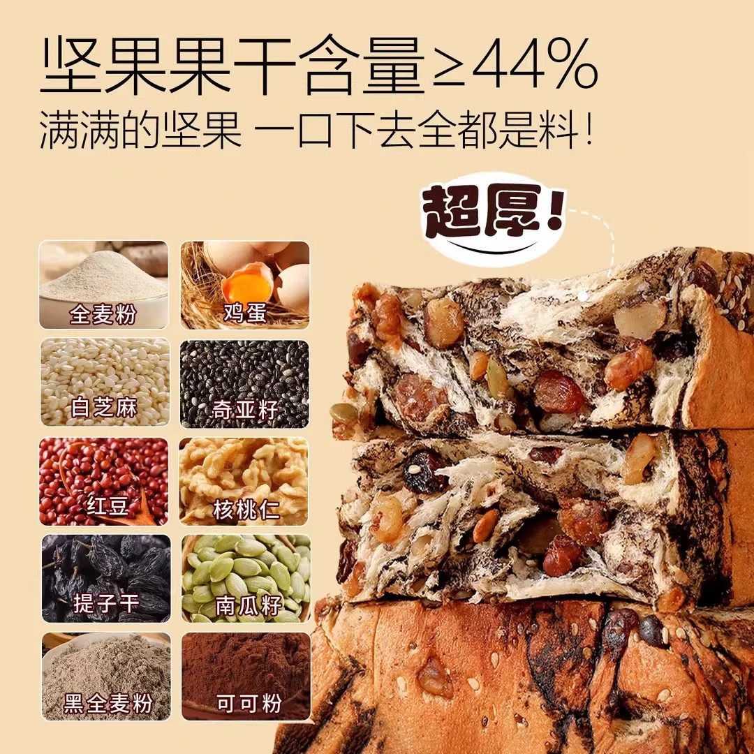 全麦坚果厚切吐司手撕面包饱腹代餐自律期速食专用零食整箱早餐由