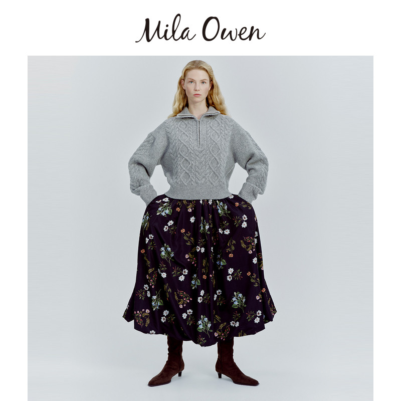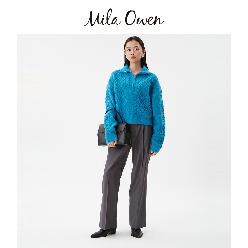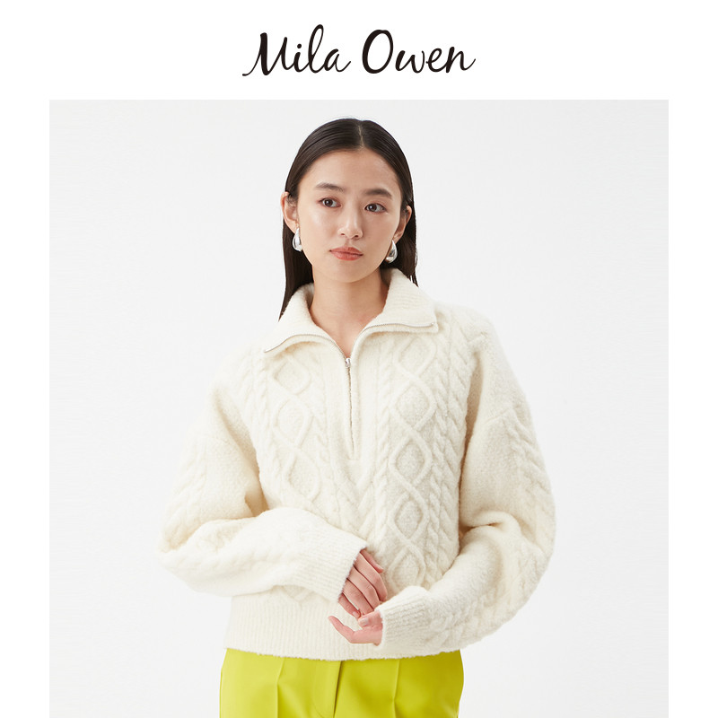 Mila 09WNT255065 Owen秋冬纯色百搭绞花半拉链套头针织衫由