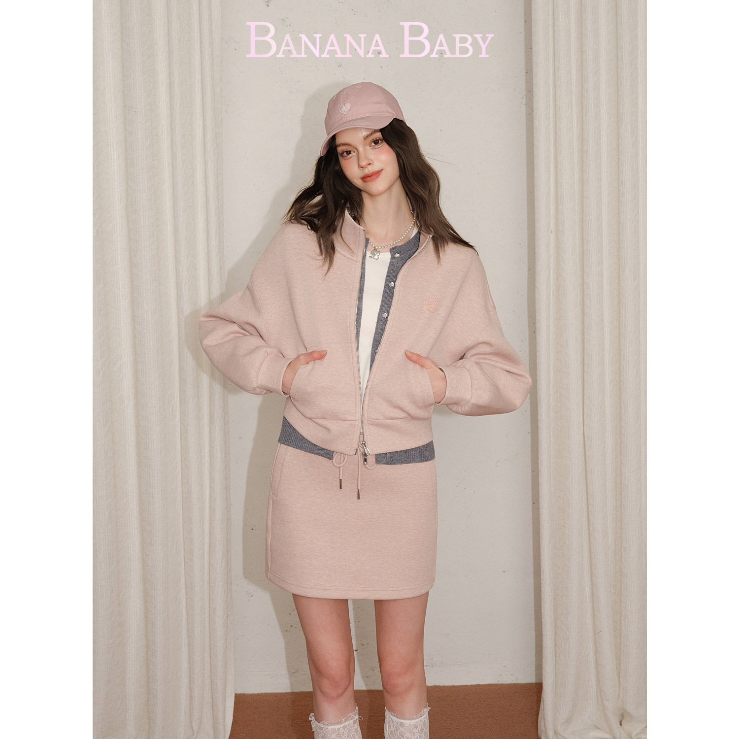 BANANA 新款 绣花立领拉链夹克休闲半裙两件套装 女 BABY2026年春季由
