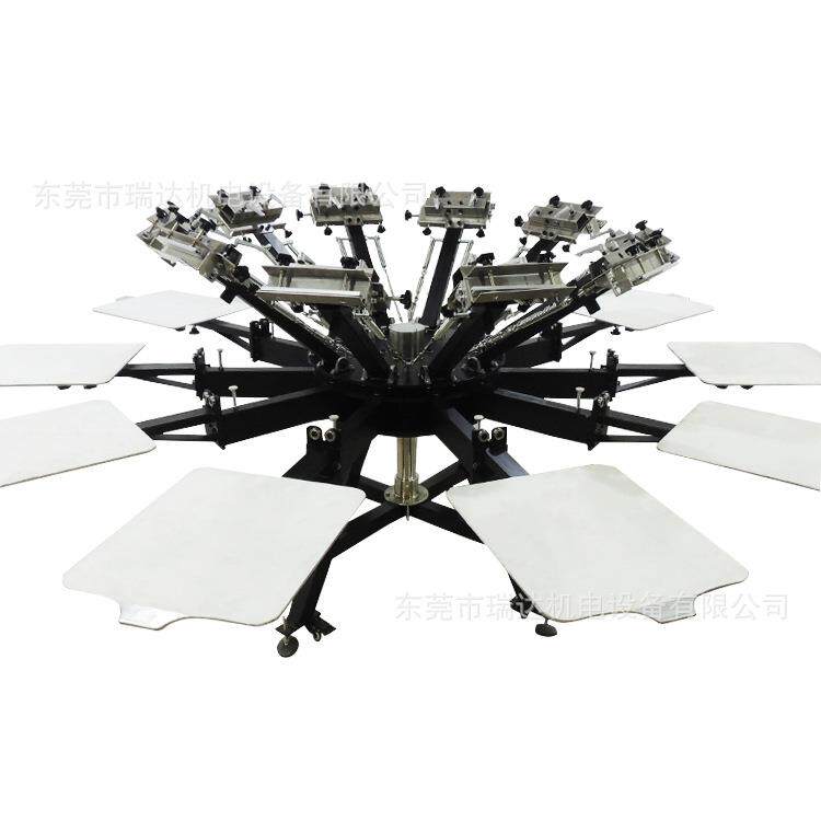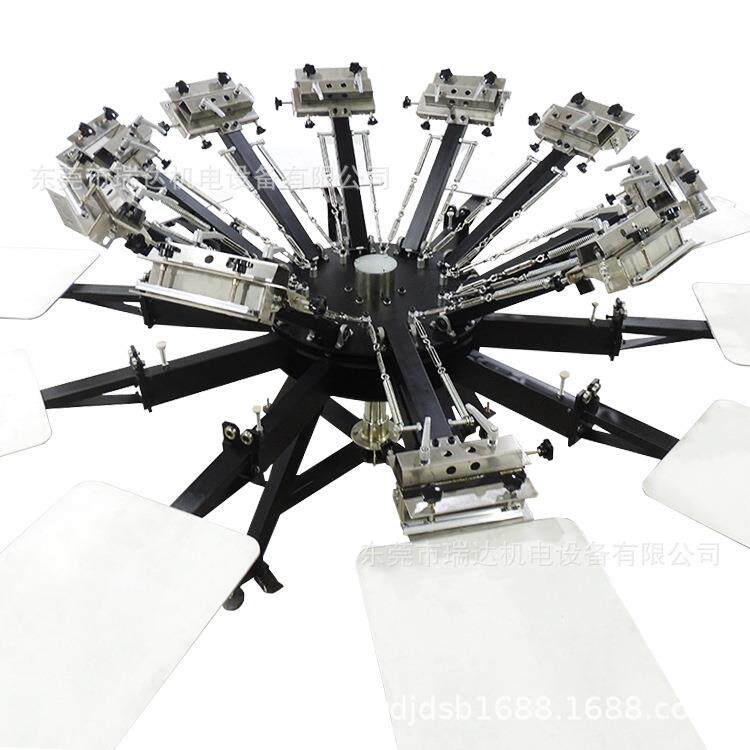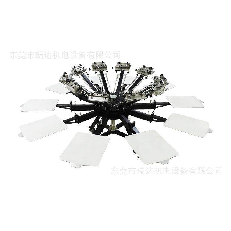 T恤印花机手动转盘薄膜布料无纺布丝印机10色圆盘丝网平面印刷机