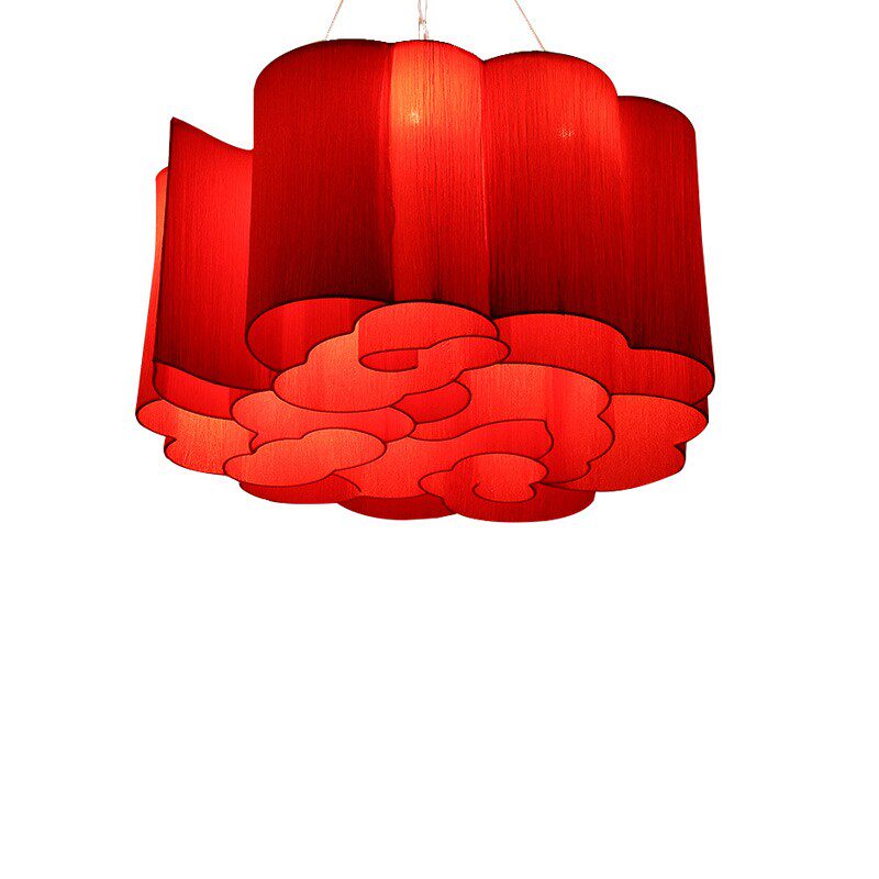 吊灯中国风复古灯具红色布艺灯饰餐厅饭店包间仿古灯 祥云灯新中式由