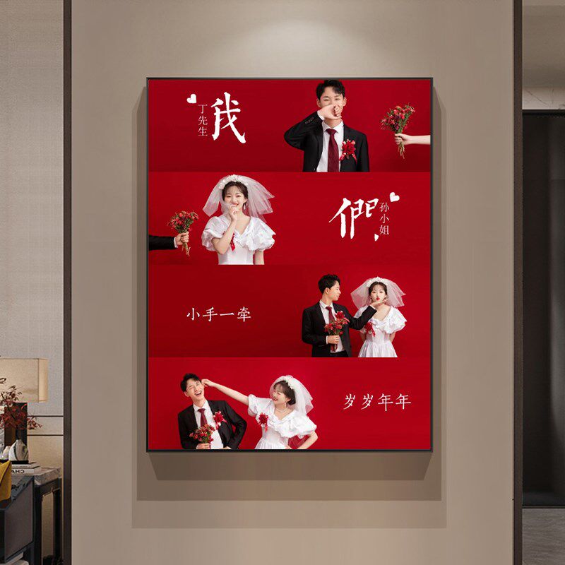 喜嫁多宫格结婚婚纱照相框放大挂墙洗照片做成定制精修相册玄关画由