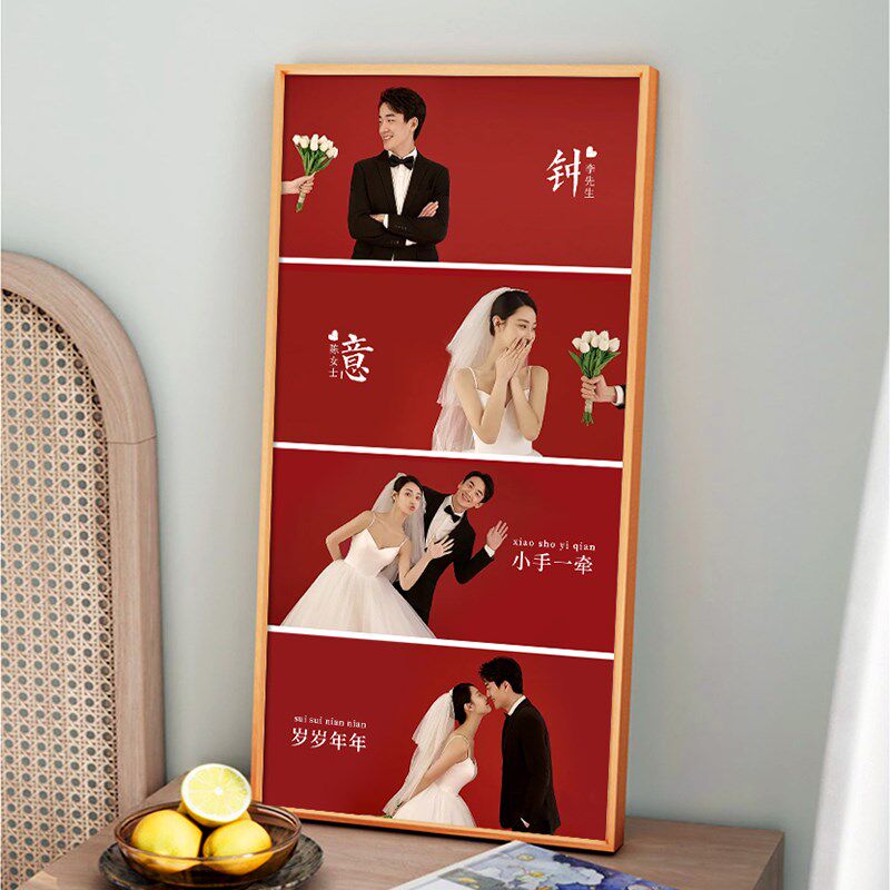 喜嫁多宫格结婚婚纱照相框放大挂墙洗照片做成定制精修相册玄关画