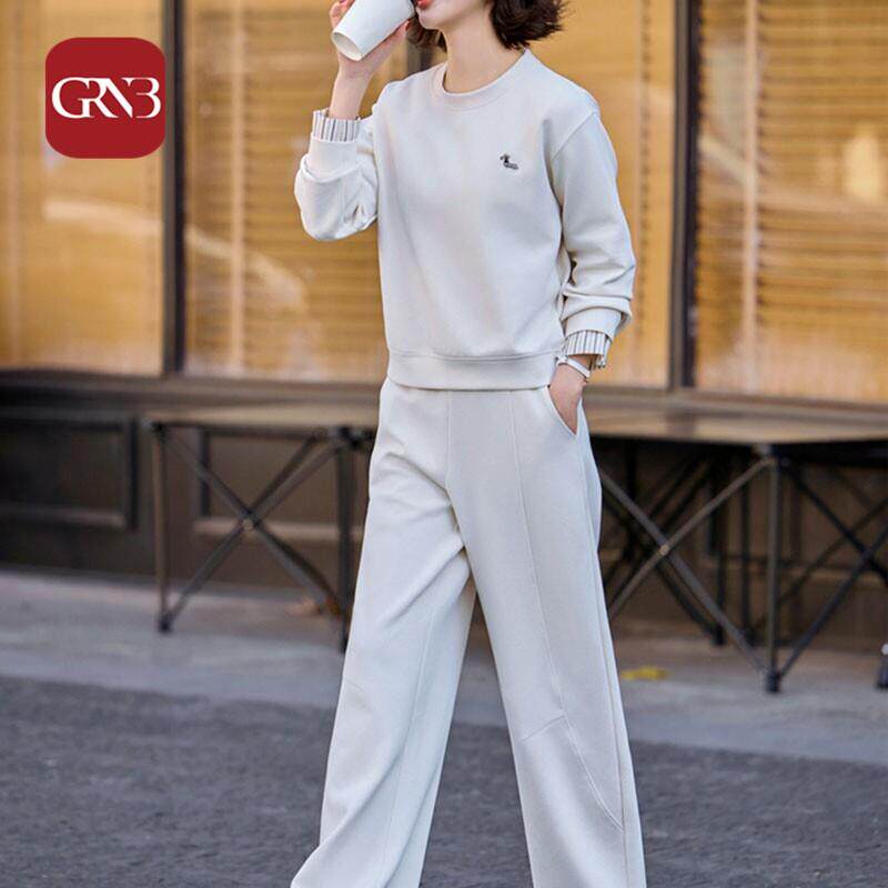 GRNB米色套头休闲运动套装 秋装 一整套圆领卫衣阔腿裤 女2025新款由