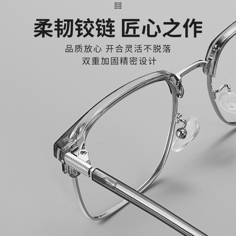 为您提供商品近视可配度数防蓝光平光金属眼睛镜架高级感 斯文理工半框眼镜男款的详细介绍,