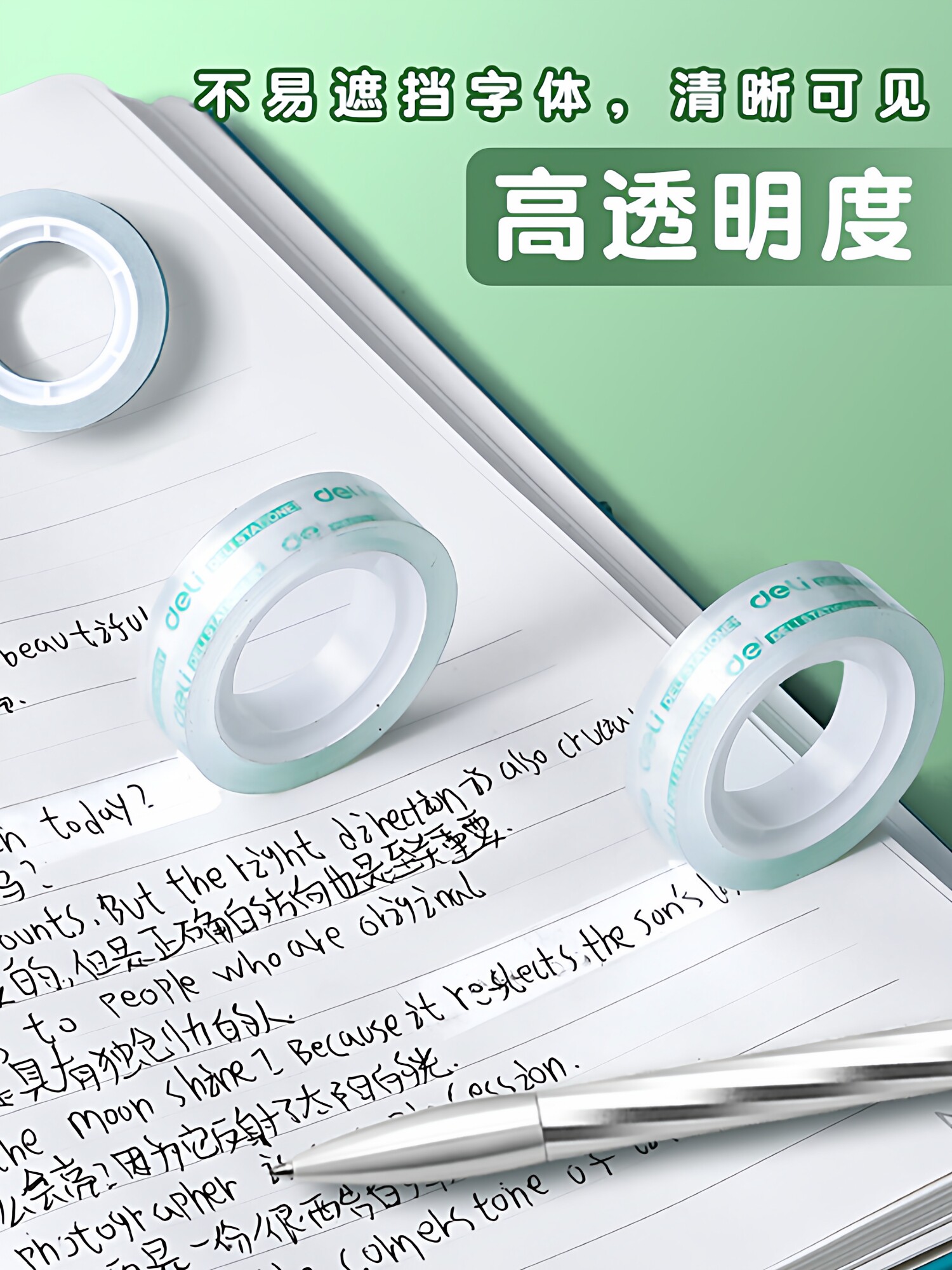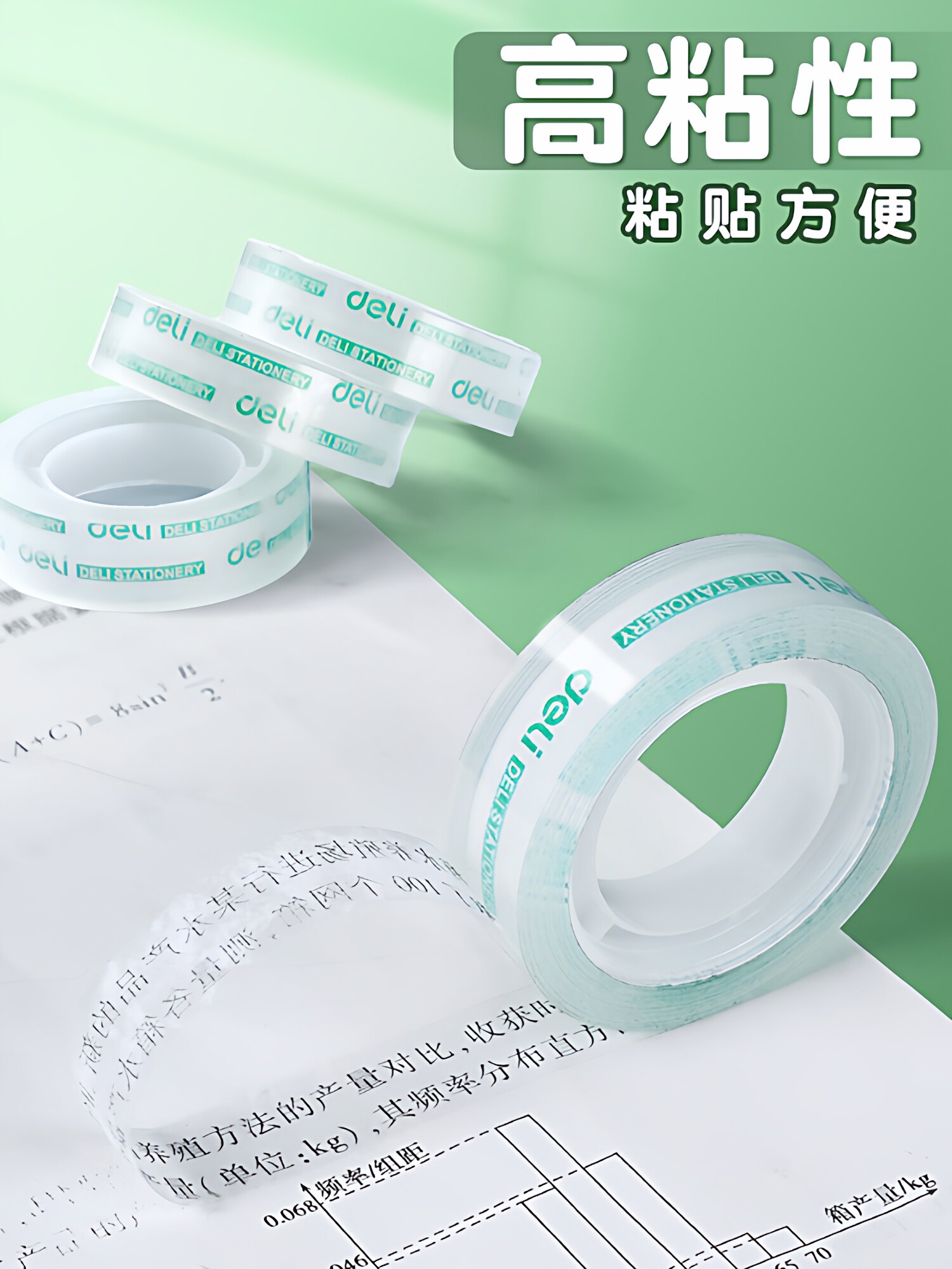 得力透明胶带小卷胶条学生用手撕文具胶带宽胶带高粘度胶布切割器办公封口小号胶带错题胶带胶纸不留胶可粘字由