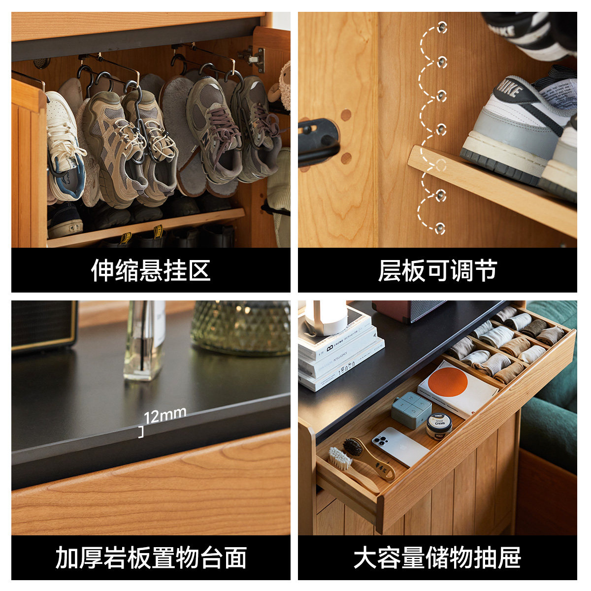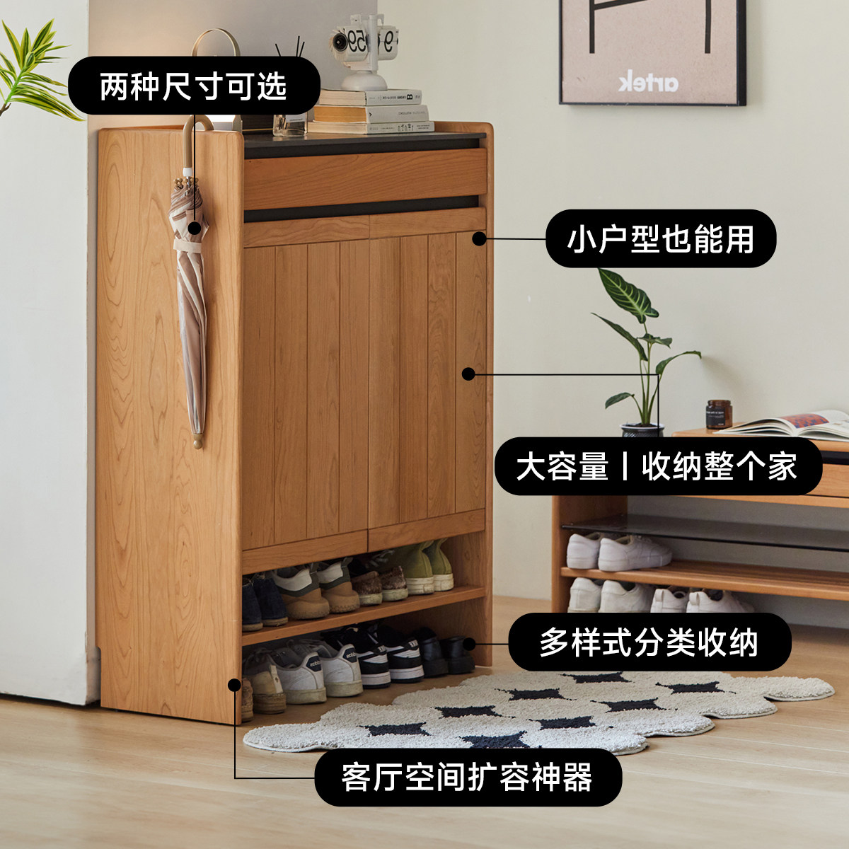 为您提供商品樱桃木28cm厚翻斗鞋 柜 柜实木超薄置物柜岩板日式 出乎生活海纳鞋的详细介绍,