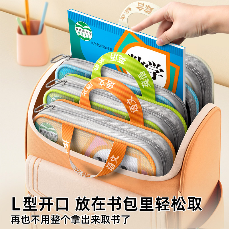 得力L型大开口学科科目分类袋小学生手提袋透明网纱文件袋拎书袋书本收纳袋一年级拉链作业袋子初中生补习袋由