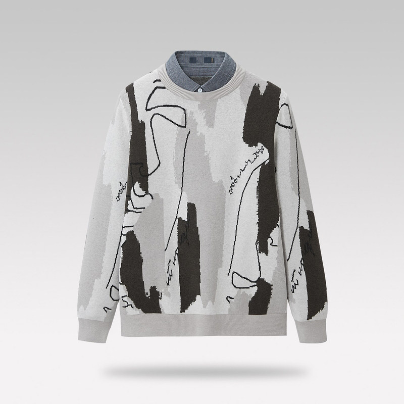 HL23180 包芯纱修身 毛衣毛衫 假两件秋冬套头 海系列男翻领针织衫由