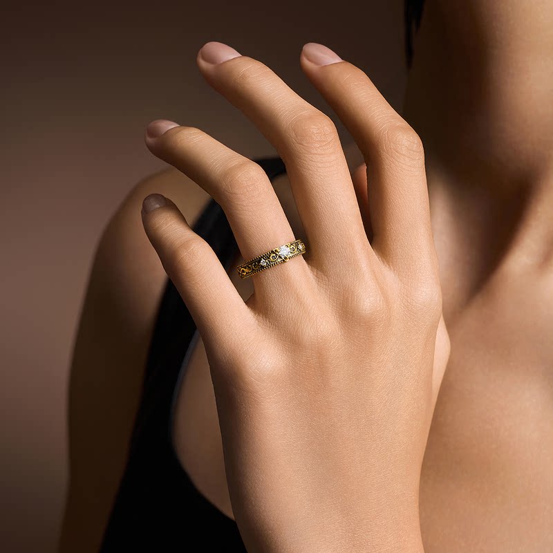 周大福SOINLOVE缪斯系列万象足金黄金镶钻戒指生日礼物