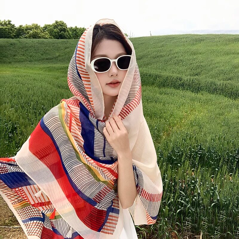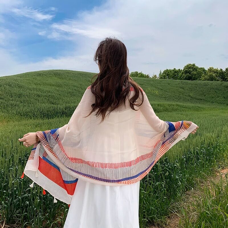 薄款 沙滩丝巾防晒大披肩纱巾三亚海边披肩围巾夏季 丝巾女2024新款