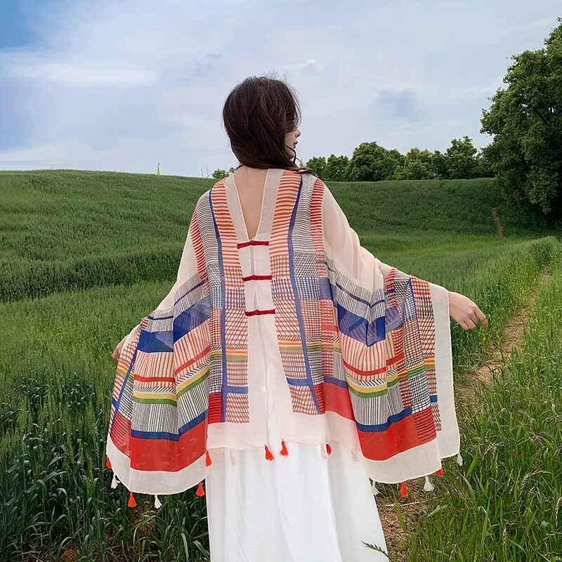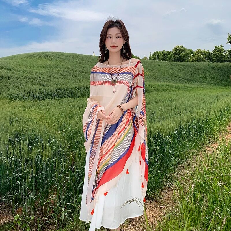 民族风披肩女2026新款 防晒外搭披风沙漠旅游沙滩斗篷丝巾 夏季