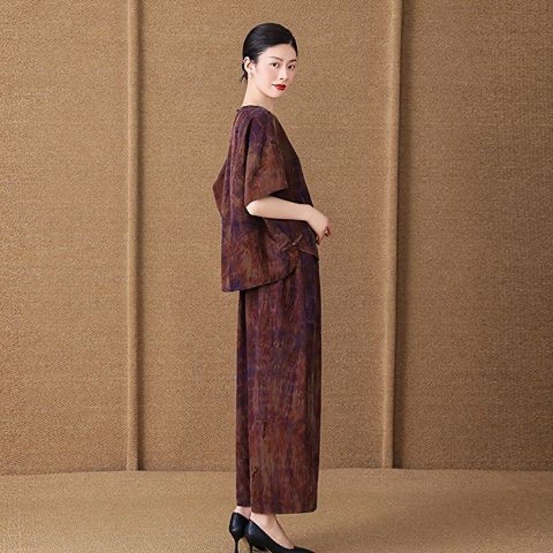 为您提供商品中年妈妈装 新中式 国风香云纱真丝套装 女夏季 两件套 宽松显瘦哈伦裤的详细介绍,