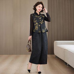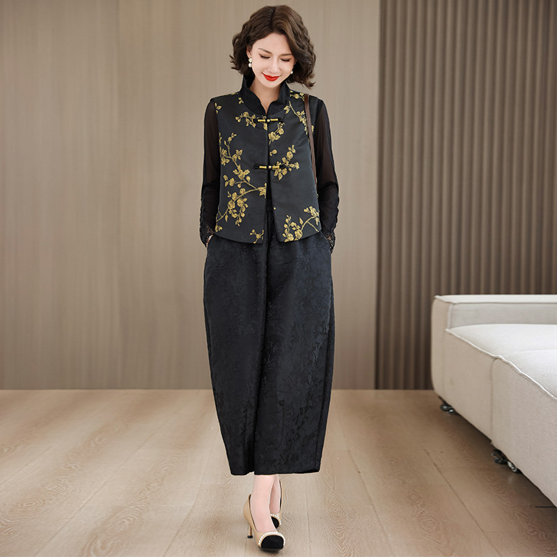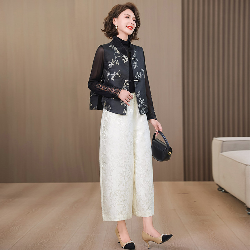 国风上衣时尚 新中式 套装 妈妈春装 早秋外套马甲 三件套中老年女装