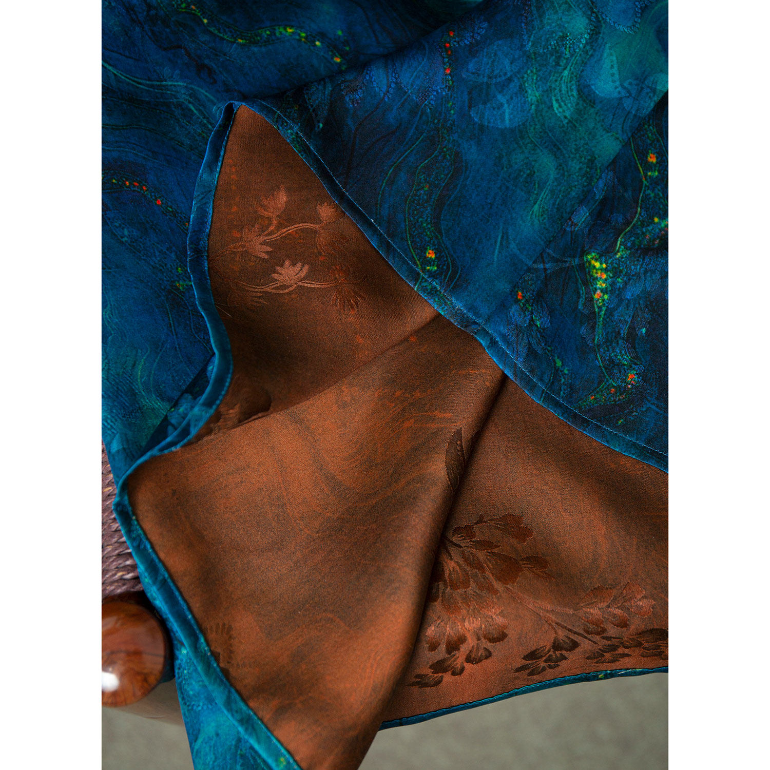 为您提供商品国风提花上衣 丝艺深海蓝真丝花罗香云纱100%桑蚕丝圆领宽松七分袖的详细介绍,