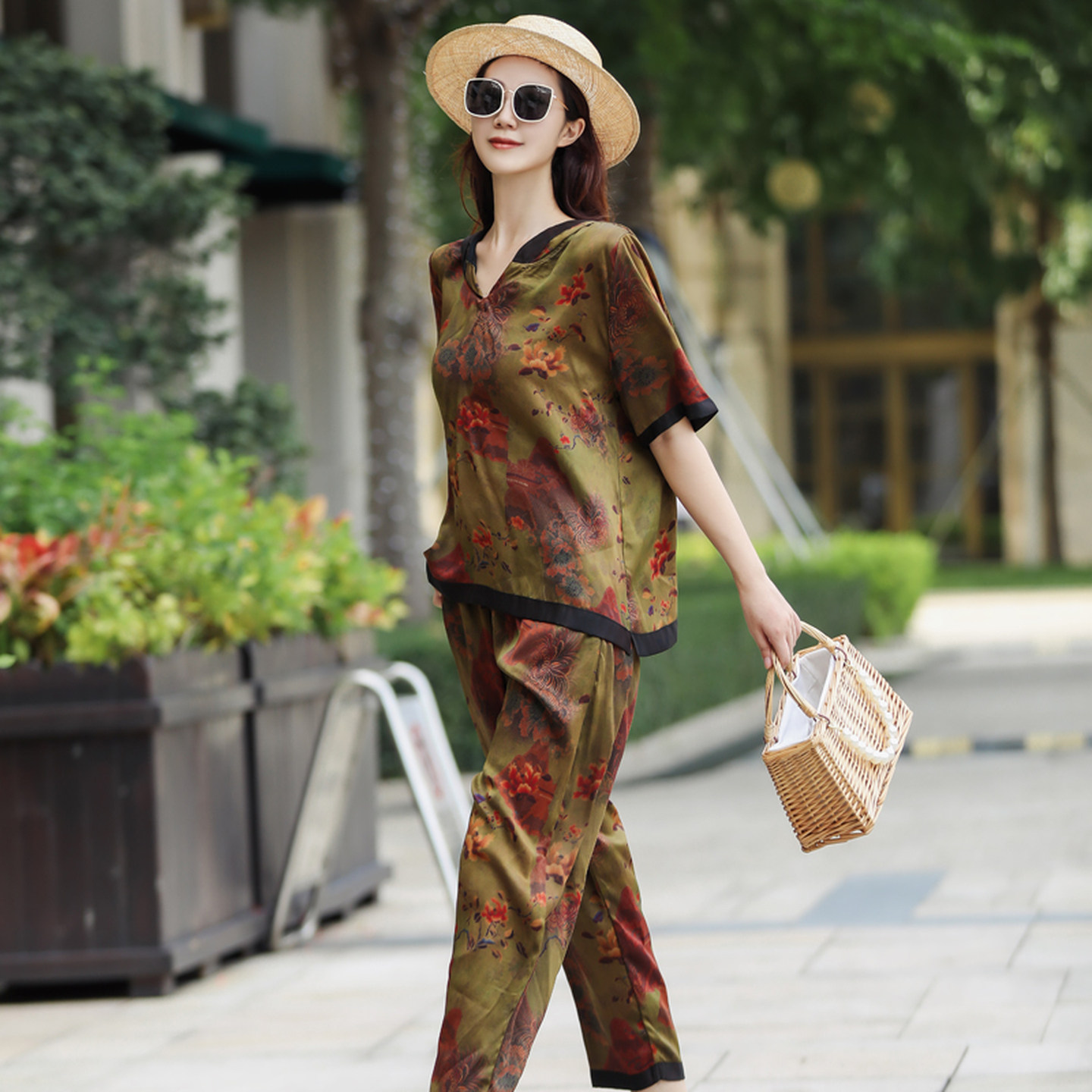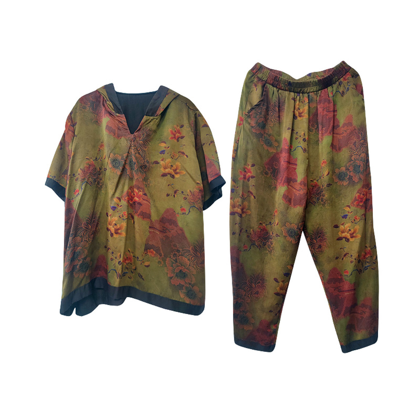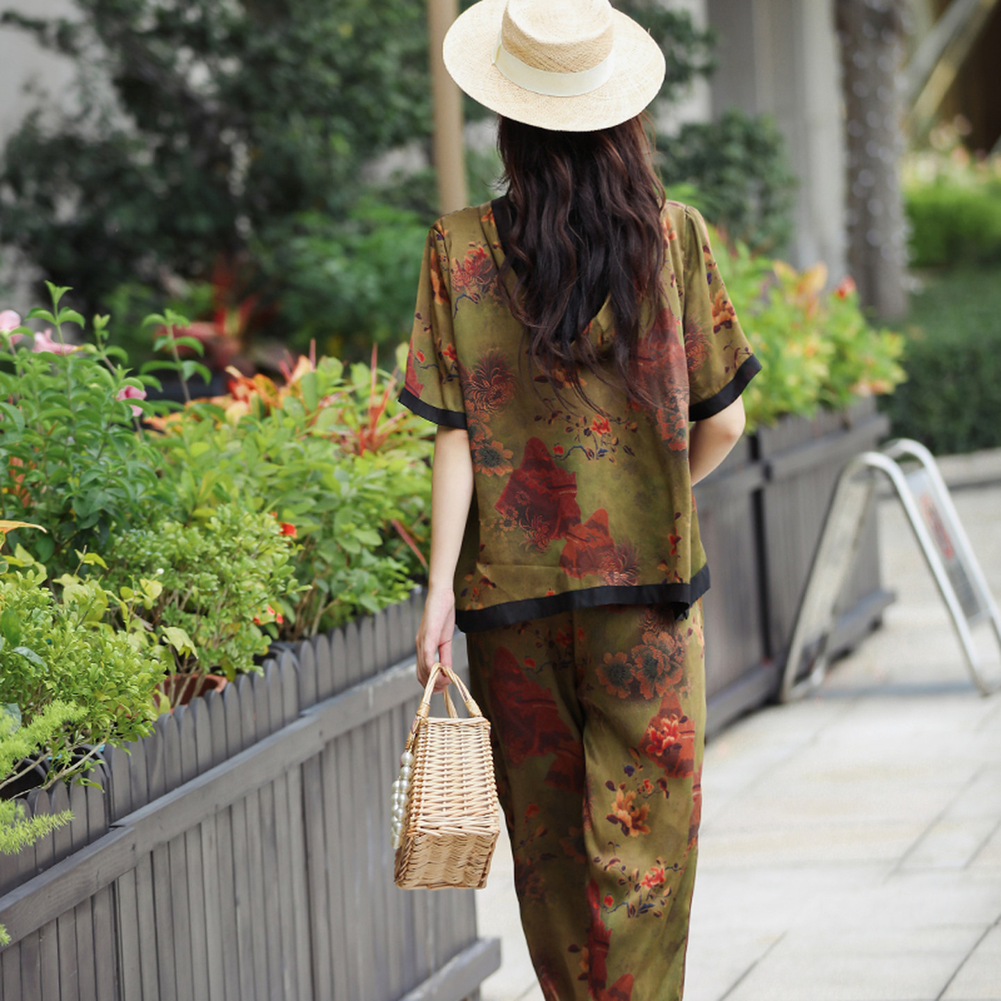 贵夫人阔太太宽松显瘦印花上衣裤 子两件套 森林香云纱套装 拜占庭