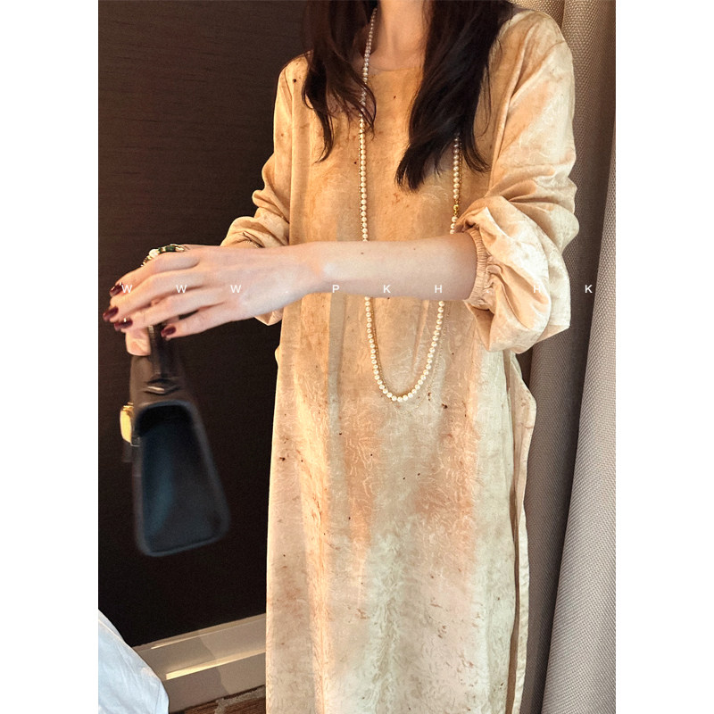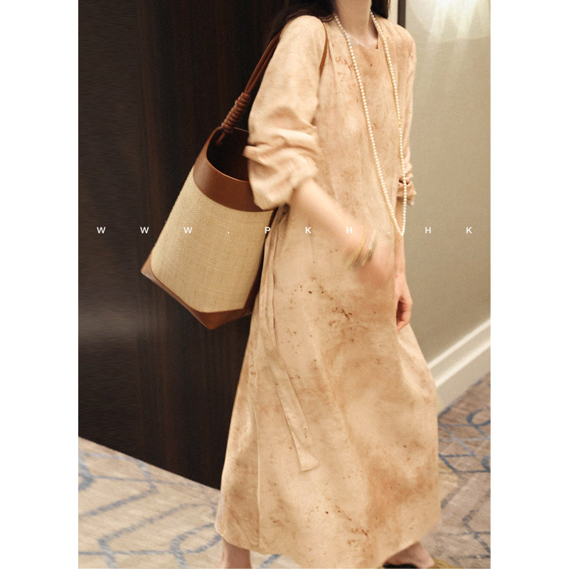 大爱 时髦文艺小众提花晕染丝棉可系腰带大袍子连衣裙 特 PKH.HK