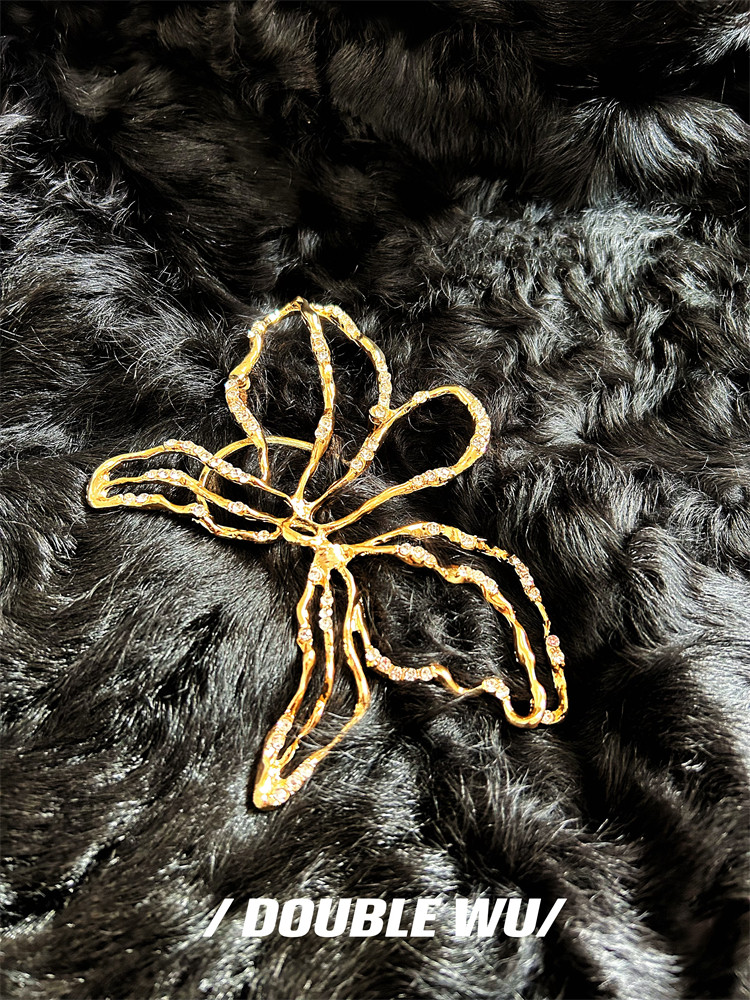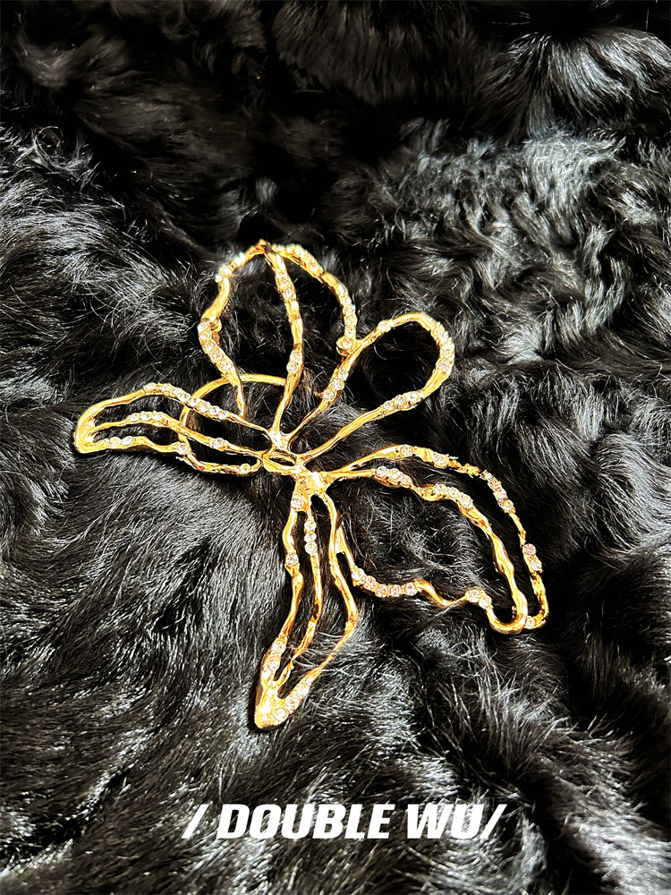 女装 DOUBLE za新款 耳环无耳洞耳挂 花朵形金属带钻全耳式